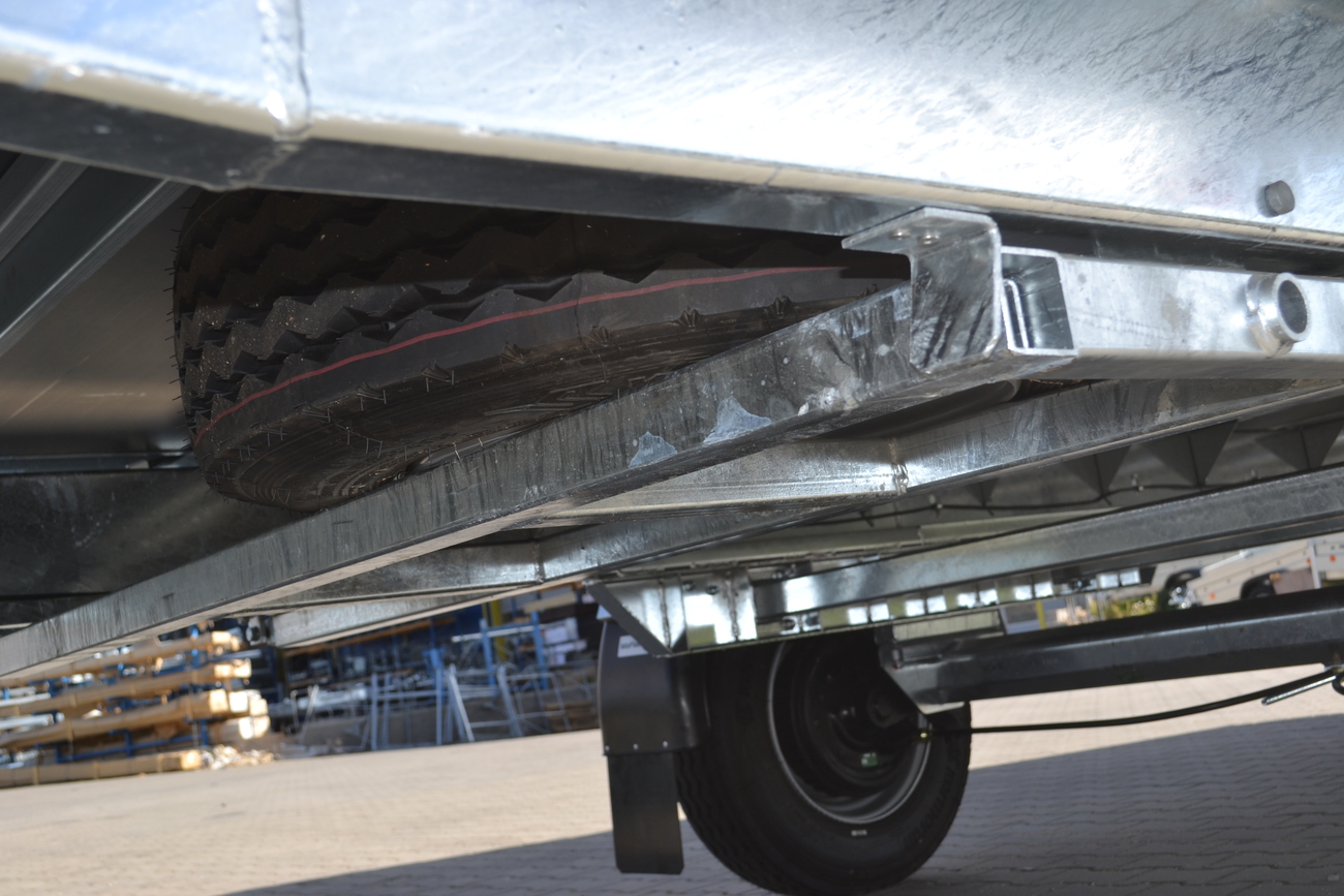 Provedení s "V" ojí, dělené, hliníkové bočnice 350 mm, 13" nebo 14" kola. 13pólová elektroinstalace, podlaha je vyrobená z voděodolné překližky o síle 15 mm. Bočnice jsou dělené, sklopné a odnímatelné, masivní žebřinový rám ze svařených dílů žárově zinkovaných.