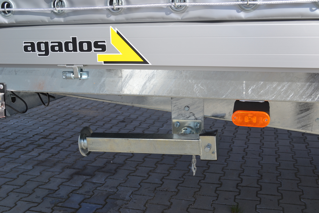 As standard, DONA 57 trailers are equipped with 16 pcs U-shaped anchoring eyes in side profiles, jockey wheel, wheel scotch blocks and AGADOS SMART rear LED lighting.