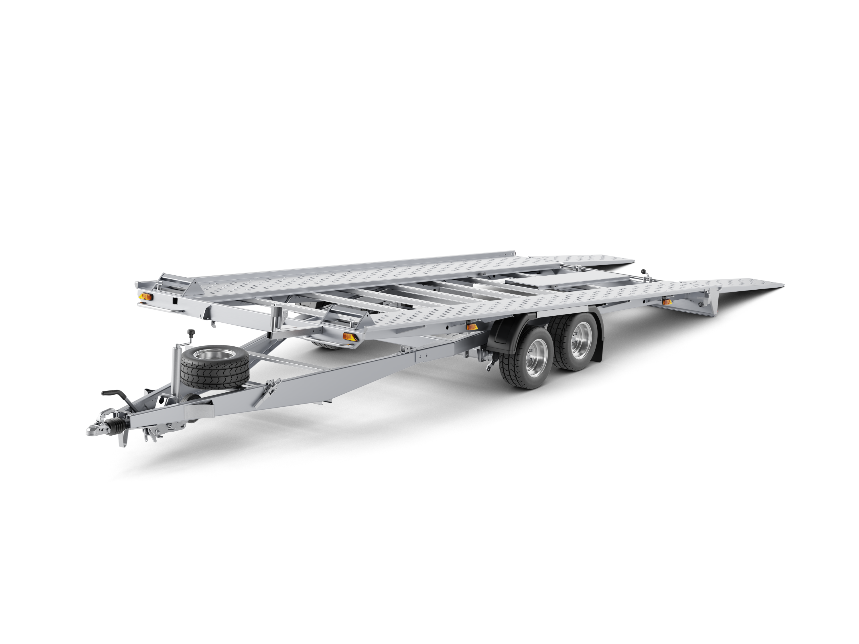 Podlaha tvořená ližinami s předními posuvnými dorazy. Ocelové nájezdy uložené v ložné ploše. Nájezdy lze posouvat po celé šířce přívěsu a mají nájezdový úhel 8°. Příprava na naviják s uchycením na levou i pravou stranu. 10“ kola, 13 pólová instalace. Náprava a brzdový systém od značky KNOTT.