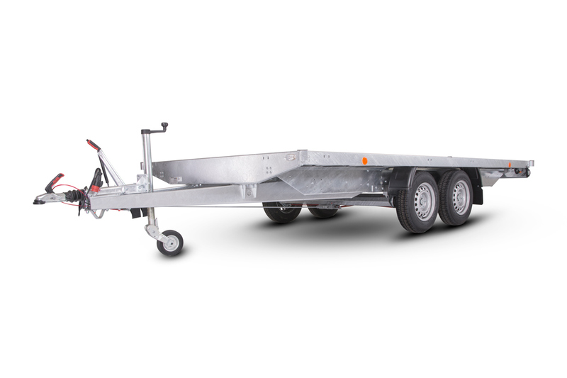 Provedení s "V" ojí, plato - bez bočnic, 14" kola. 13pólová elektroinstalace, podlaha je vyrobená z voděodolné překližky o síle 15 mm. Masivní žebřinový rám ze svařených dílů žárově zinkovaných.