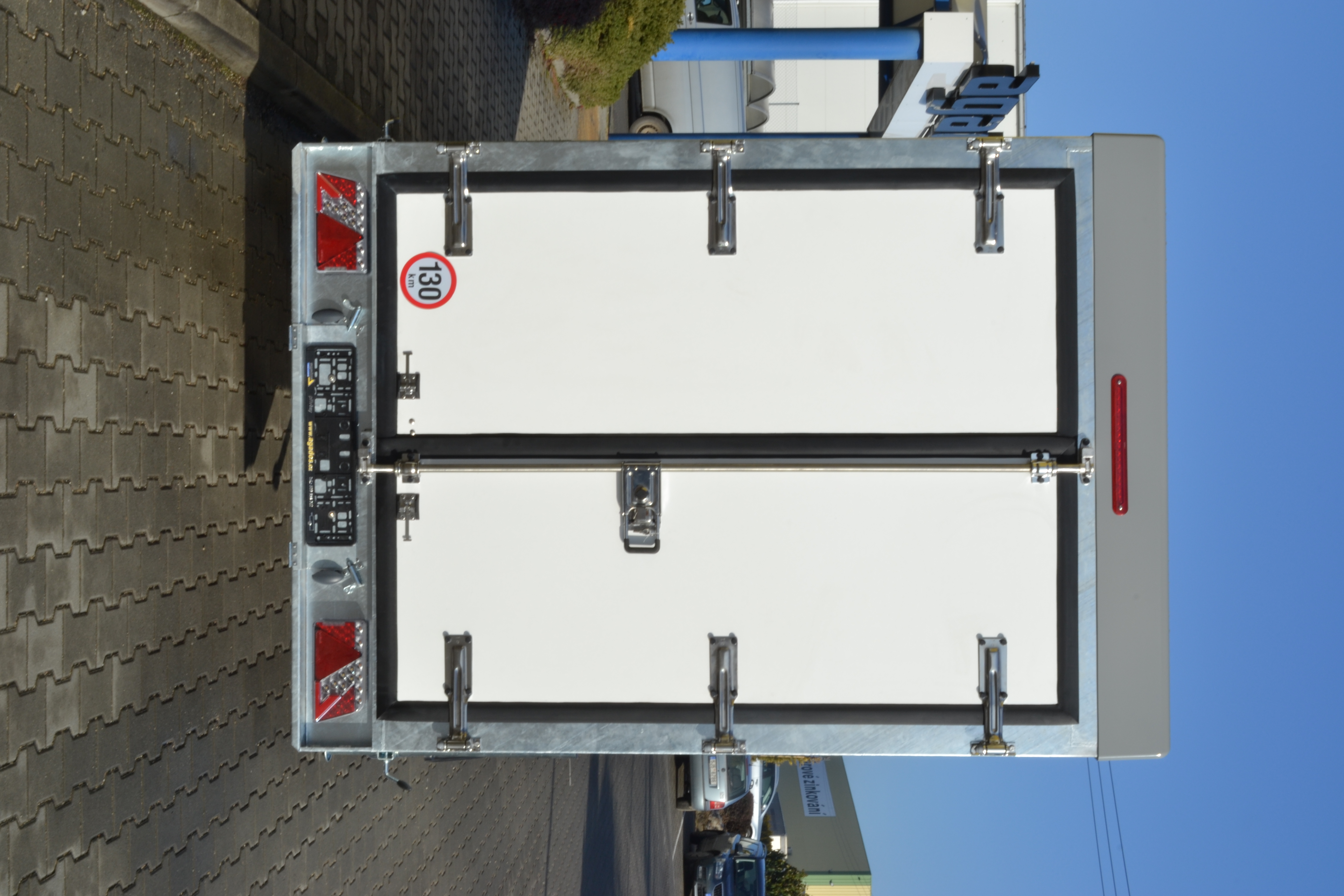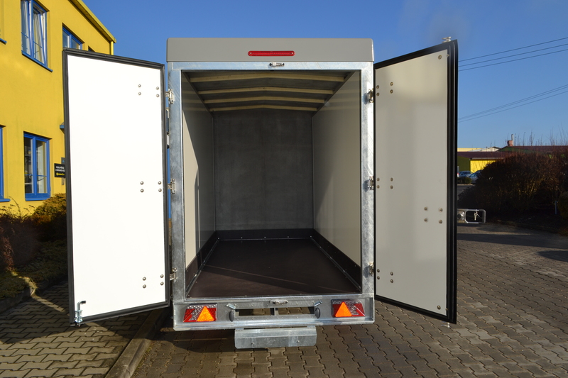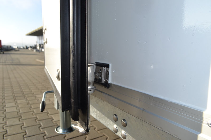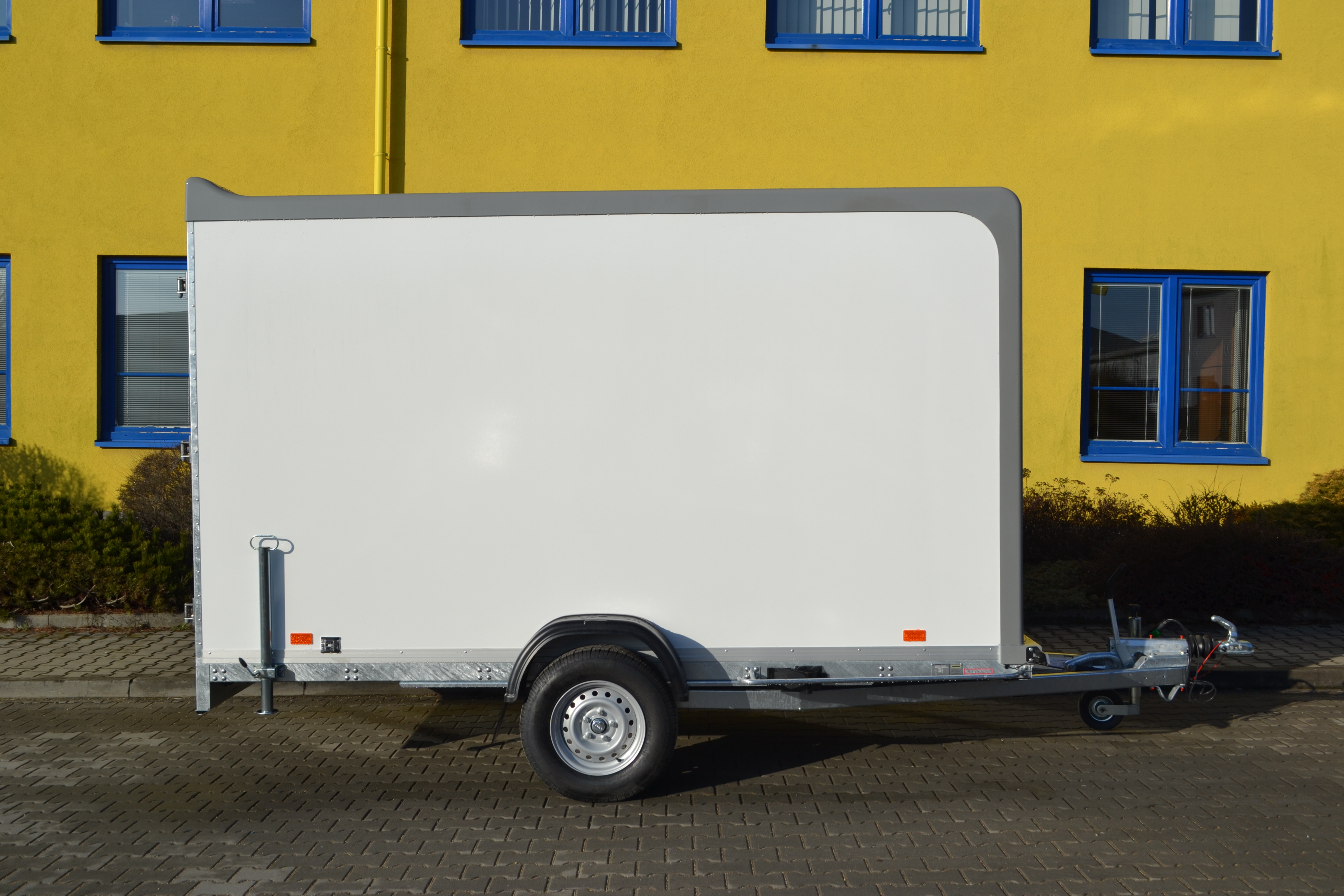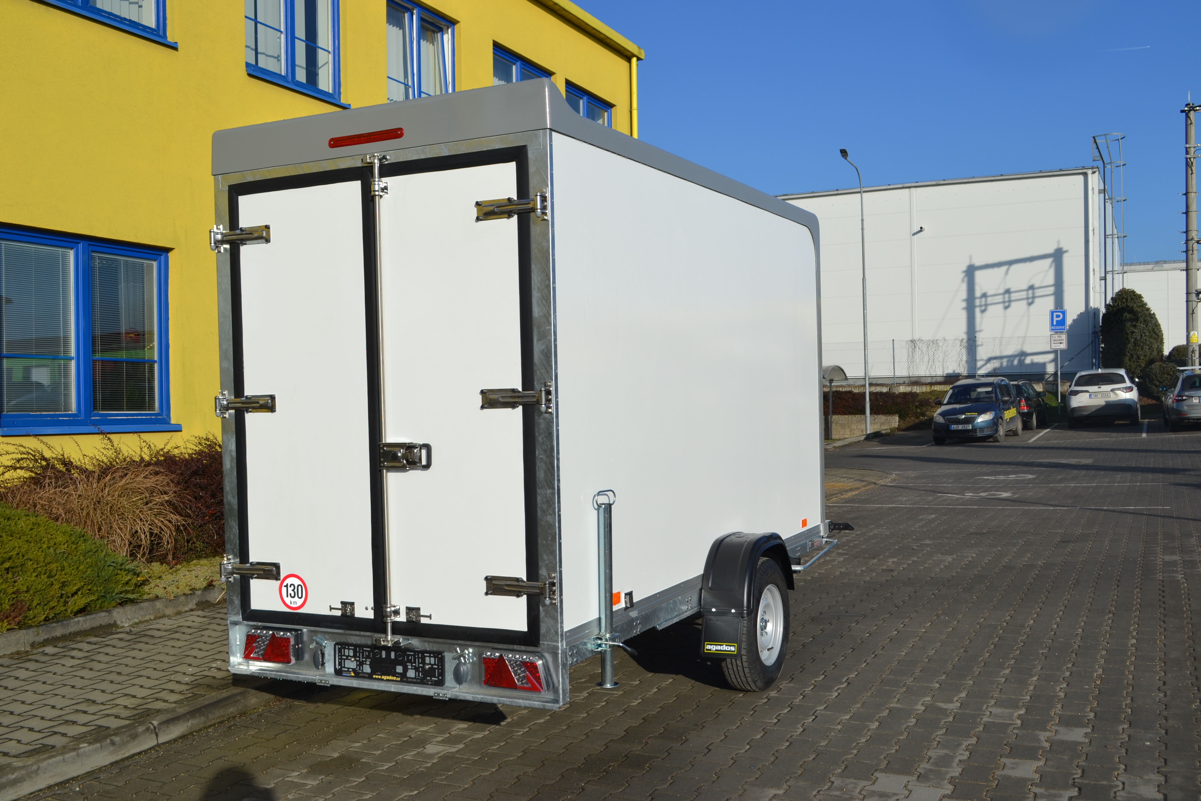 Provedení s "V" ojí, bílé bočnice ze sendvičových panelů o šířce 30 mm, zadní dvoukřídlé dveře s tyčovým uzávěrem, kola 185 R14C, 13pólová elektroinstalace, podlaha je vyrobená z voděodolné překližky o síle 15 mm. Masivní svařovaný rám podvozku.