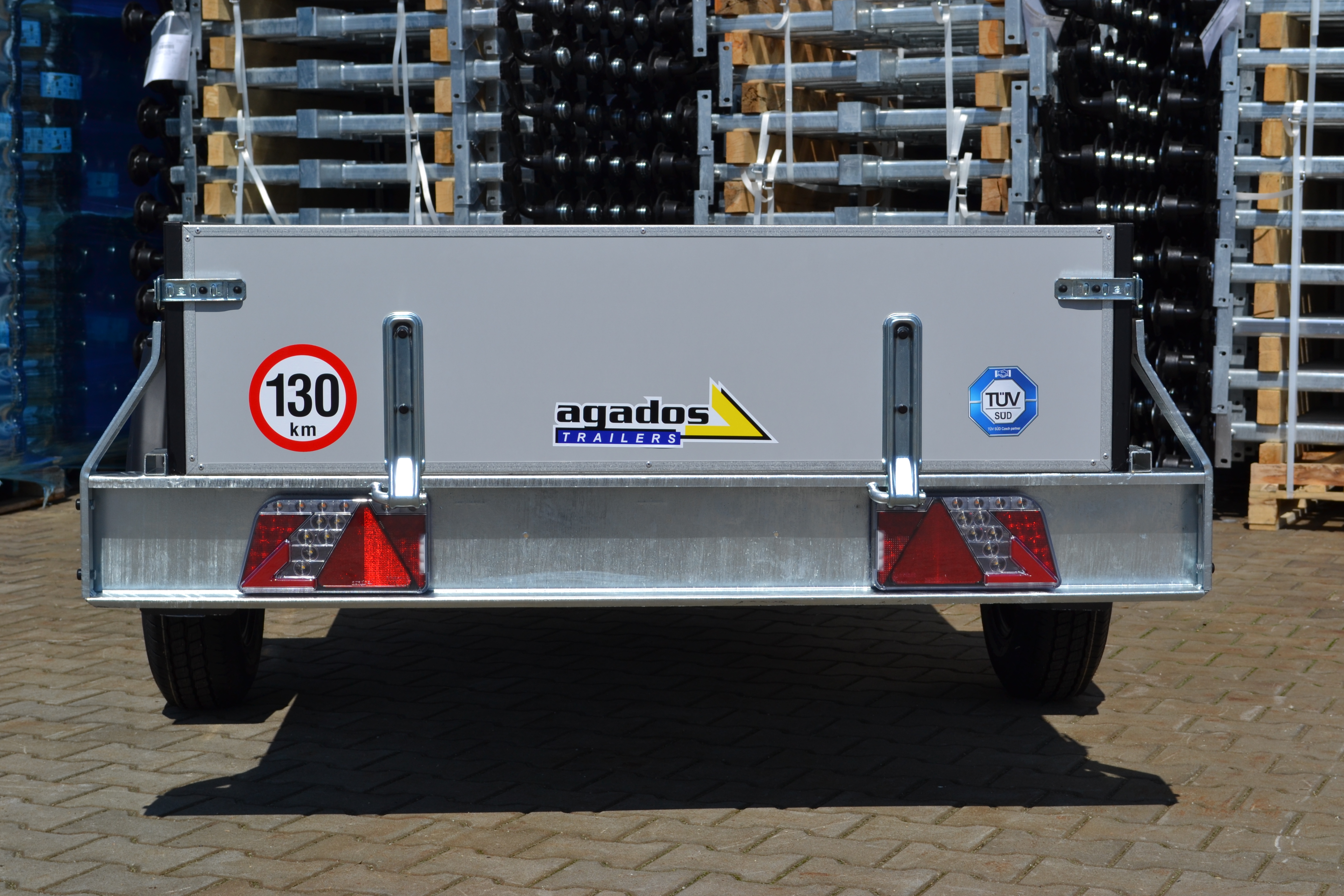 Provedení s "V" ojí, překližkové bočnice 350 mm, 13" kola, 13pólová elektroinstalace, podlaha je vyrobená z voděodolné překližky o síle 15 mm. Masivní svařovaný rám podvozku s výztuhami.