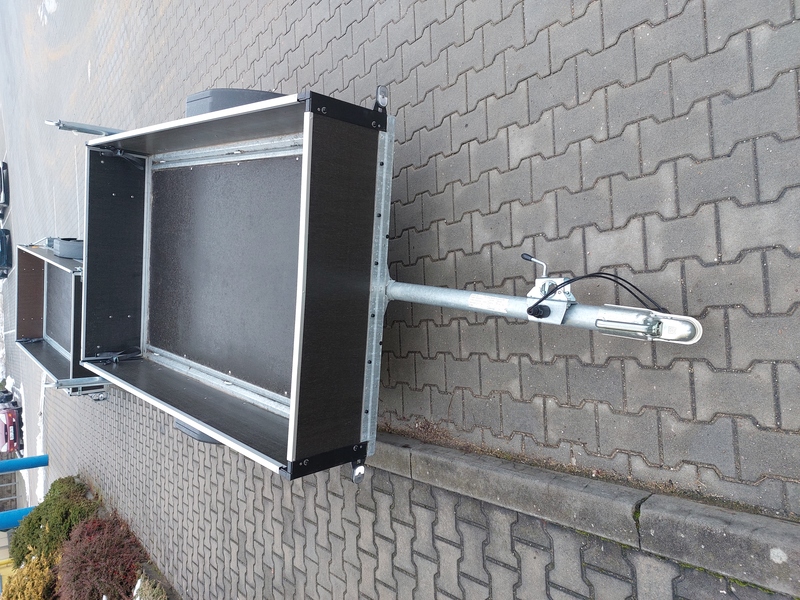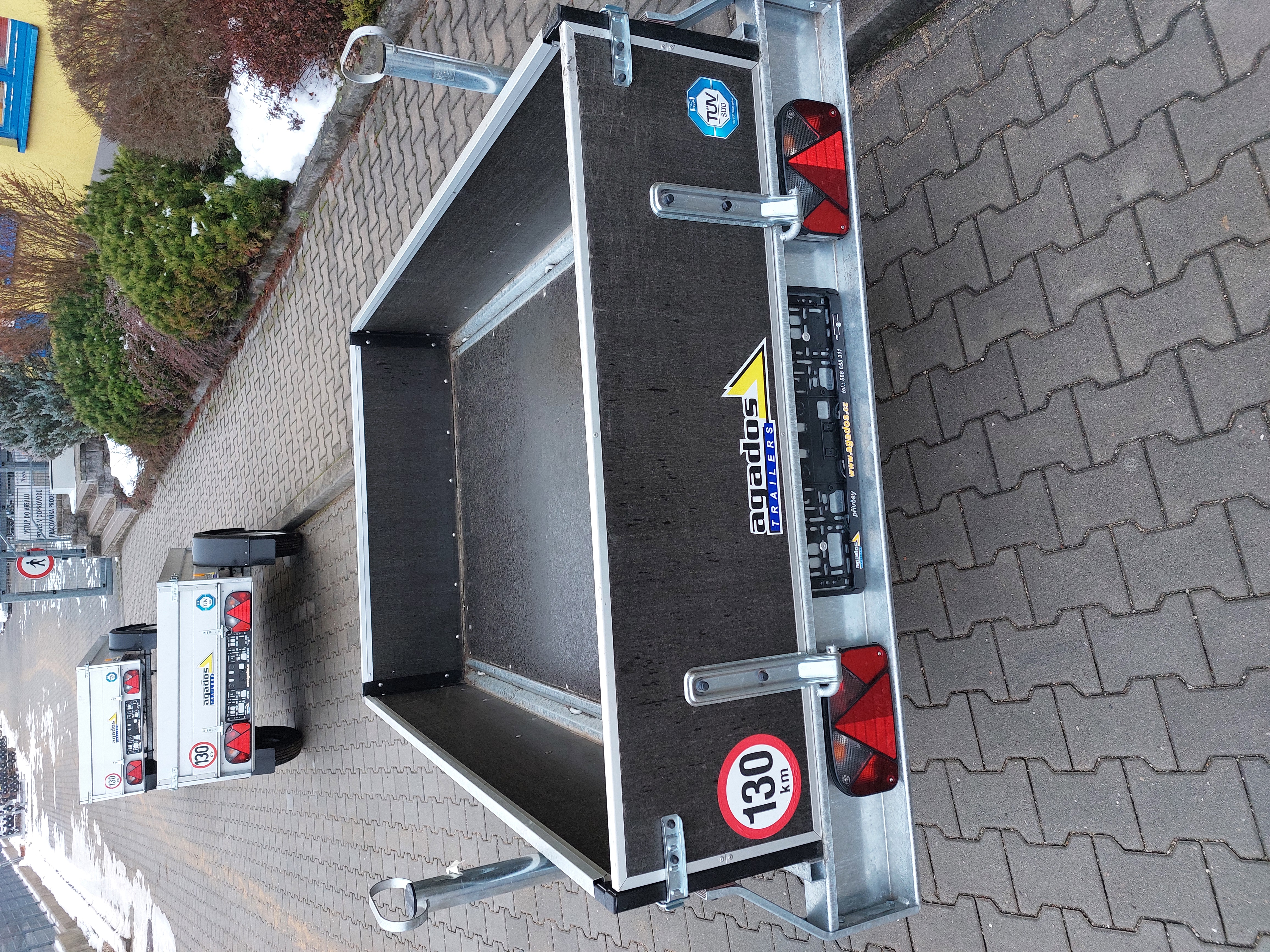Provedení s trubkovou ojí, překližkové bočnice 350 mm, 13" kola, 13pólová elektroinstalace+žárovková světla, podlaha je vyrobená z voděodolné překližky o síle 15 mm. Masivní svařovaný rám podvozku s výztuhami.