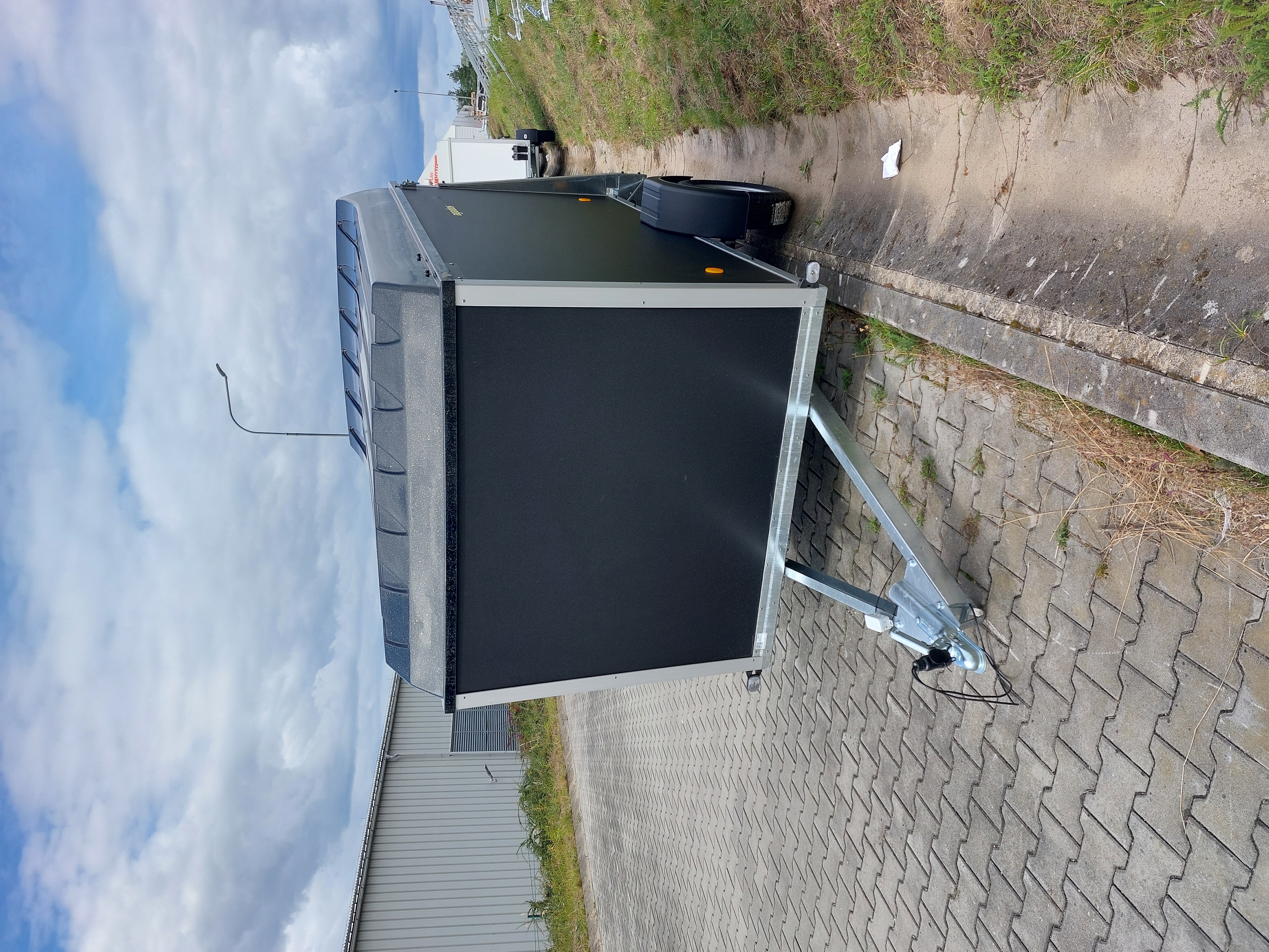 Provedení s "V" ojí, překližkové bočnice 1235 mm, 13" kola, 13pólová elektroinstalace+žárovková světla. Podlaha je vyrobená z voděodolné překližky o síle 15 mm. Masivní svařovaný rám podvozku s výztuhami, zadní najížděcí rampa.