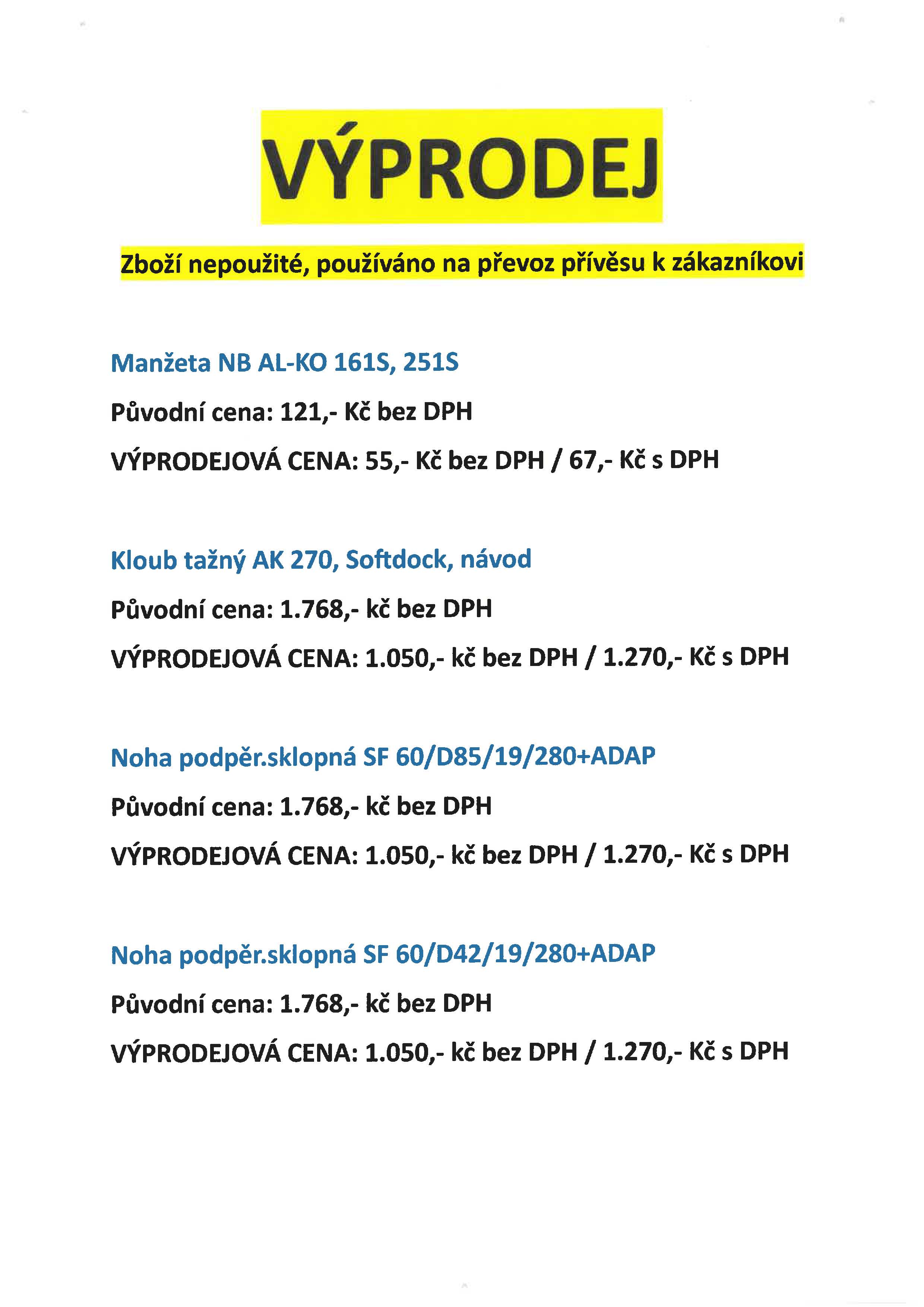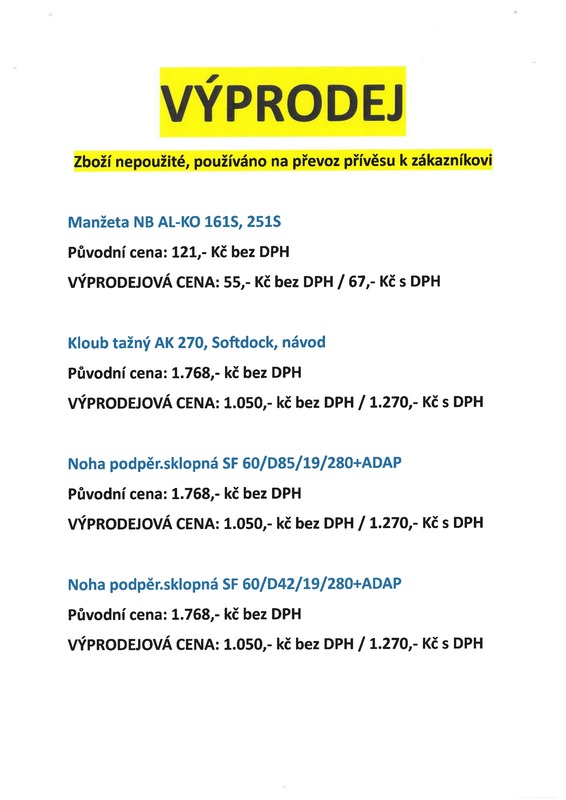 VÝPRODEJ NÁHRADNÍCH DÍLŮ